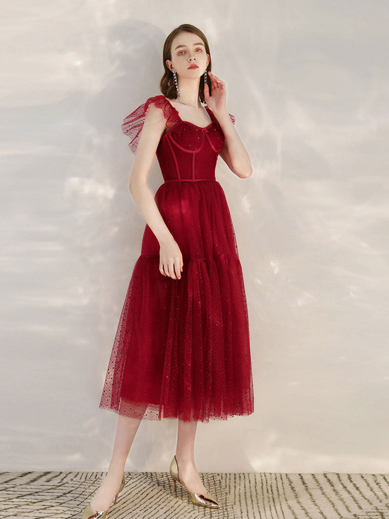 Aline sweetheart neck burgundy short prom dress, burgundy formal dress